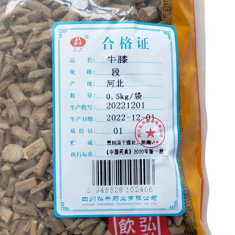 【炮制】牛膝 除去杂质,洗净,润透,除去残留芦头,切段,干燥。
